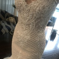 The gown making process is very complexed after the bride has paid her second deposit after her “order and Fit” night, we then order the fabrics, this can take up to six weeks!!…. why we are waiting for fabrics to arrive, we are designing the gown, making a pattern for the gown, then when fabrics arrive we need to cut the pattern to those fabrics, and start some sew work…. The lace (on a roll) is then laser cut around each individual piece of lace so we can then place it on to a mannequin in a “pin pattern” to your inspirational photos, we the hand sew-in, then it’s on to beadwork and finally links, We actually don’t start putting all the elements together to towards the final weeks!!